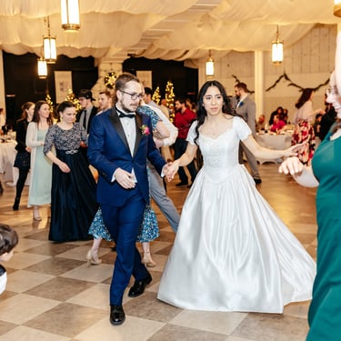 This is where the dancing DJ comes in! If you want to create a community on the dance floor, we offer the option to lead you and your guests in line and mixer dances. Line dances are great because they generally get a lot of people on the floor with excellent spacing. But line dances aren't enough on their own to create a community. So we use line dances to set up the mixer dances, which do create community by getting people who don't know each other to dance with each other in a way that is safe and comfortable. Typically we spread these dances throughout the night to build and maintain a good energy and vibe. So you have a good mix of ballroom, line and mixer dance songs.