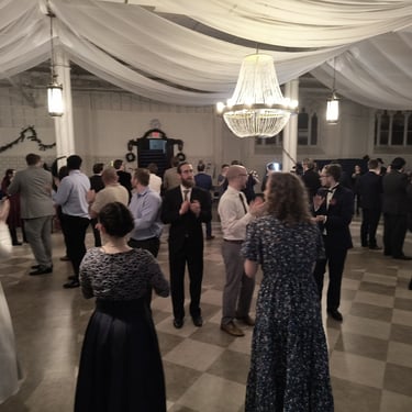 Blaine and I were frequent attendees to Matt Mordini's events and dance classes over the years we were dating and engaged. We immediately knew we wanted him to DJ and emcee our wedding. He did a fantastic job, mixing classic and contemporary music, and even leading us and our guests in the Irish Washerwoman dance at our request for a true highlight of the night! We highly recommend him to any and all looking for your event needs!